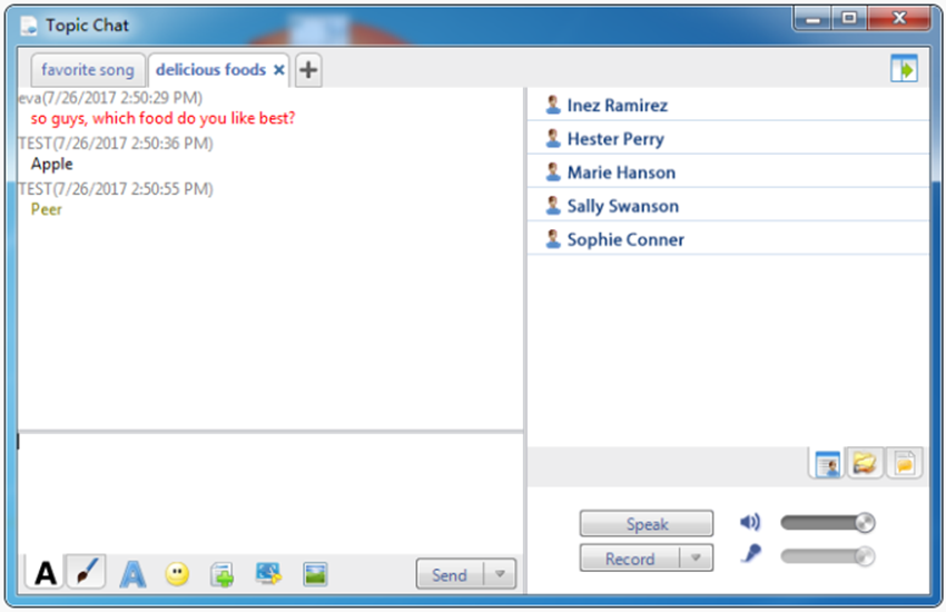 Giáo viên có thể cài các chủ đề trò chuyện khác nhau và học viên có thể chọn để tham gia vào chủ đề bằng một cú nhấp chuột. Ngoài ra giáo viên có thể chọn một trong những nhóm chủ đề để tham gia trò chuyện.