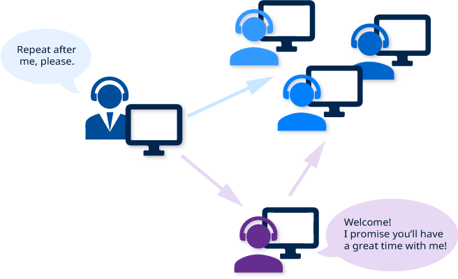 Giáo viên và học viên giao tiếp và tương tác với nhau thông qua trò chuyện bằng giọng nói mà không rời khỏi chỗ ngồi.
