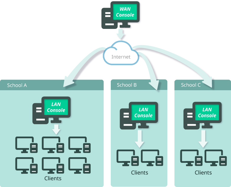 Với chức năng Bật / Tắt / Khởi động lại từ xa, giáo viên có thể bật nguồn cho tất cả các máy tính trong lớp trước khi đến lớp và tắt chúng khi lớp học kết thúc. Trong giờ học, tất cả các PC viên cũng có thể được khởi động lại theo nhu cầu giảng dạy.